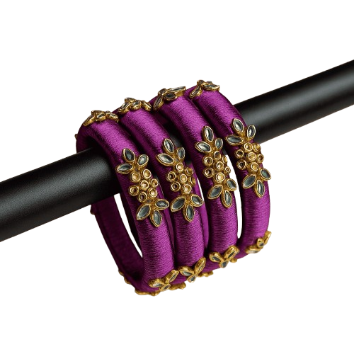 পার্পল সিল্ক থ্রেড হ্যান্ডমেড চুড়ি সেট